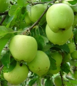 Frucht : grün bis goldene, sehr wohlschmeckende (ich finde : etwas langweilige), süße Edelsorte, knackig, saftig