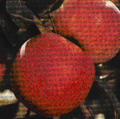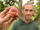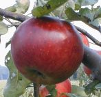Frucht : leuchtend rote bis tiefrote Deckfarbe, erinnert in ihrem weinigen Geschmack an Cox Orange, neigt zur Lagerfäule