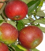 Frucht : kegelförmiger, mittel bis großer, rot gestreifter Tafelapfel mit süßsäuerlicher Würze