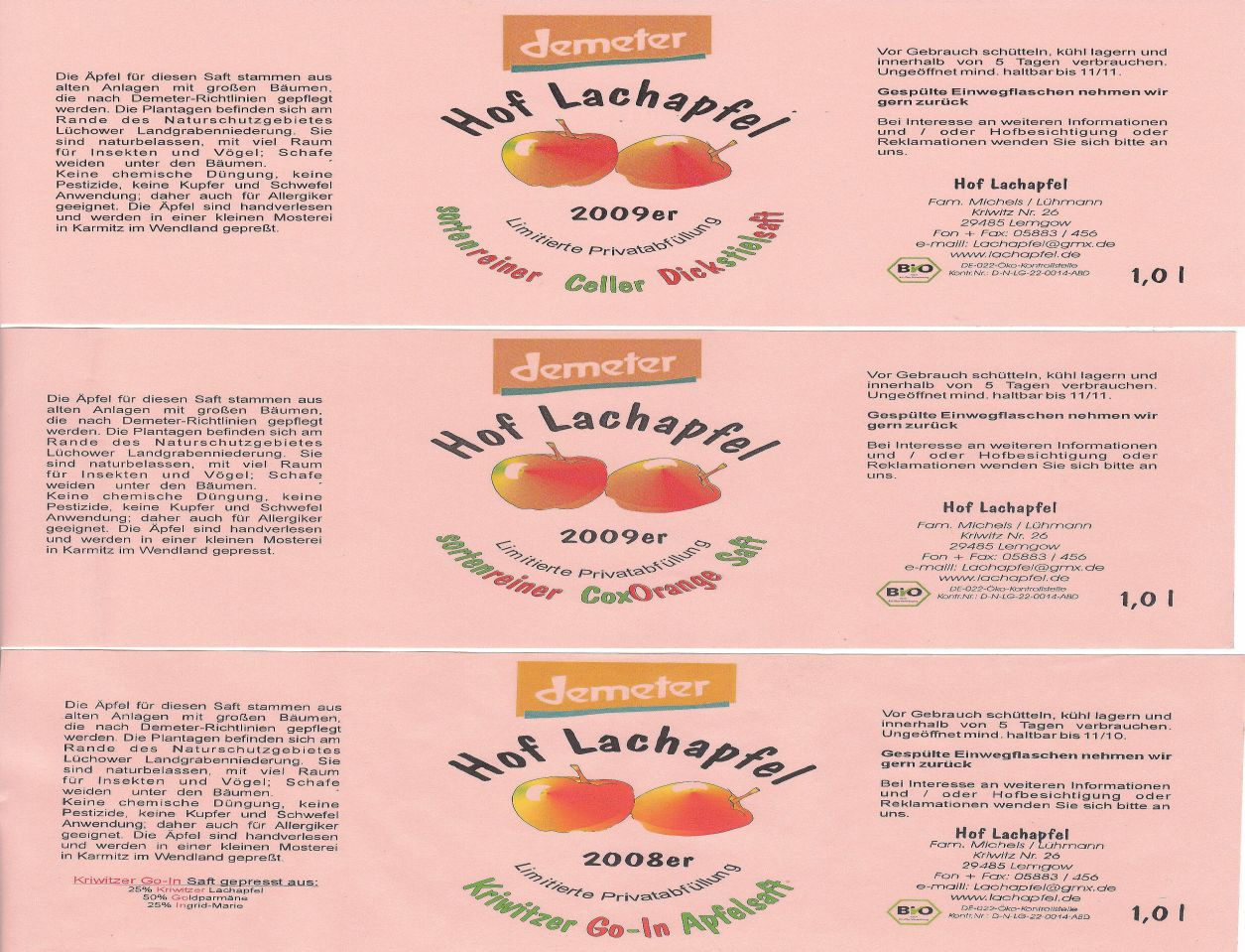 Diese 3 verschiedenen Sorten Apfelsaft haben wir im Moment noch anzubieten. Die Zusammensetzung entnehmen Sie bitte dem Etikett.